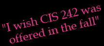 Did you have an "Ah Hah!" moment, if so what was it?Yes, my “Ah Hah!” moment came in the form of Cascading Style Sheets (CSS). Now implemented through out this web site. I had seen and worked around them before, but I never knew how or what they were doing on a web page. I only knew that some codes did not work without them. Now having the understanding required to create and properly work with a syle.css document has changed everything for me. I love putting so many tags into the CSS file. This saves time, easly implements uniformity through out your web site, and allows easy changes to be made as well. For instance, this is prety much what my body tags looked like before this class:< Body Background="Images/BG-Bar3e.jpg" Text="#FFFFFF" Link="#6495ED" Alink="#DC143C" Vlink="#6495ED" Leftmargin="0" Topmargin="0">Now it is down to:< Body>or< Body class="Bar">This class has been a lot of fun and I am anxious to take what I have learned and move onto CIS 242. What did you like about the class?